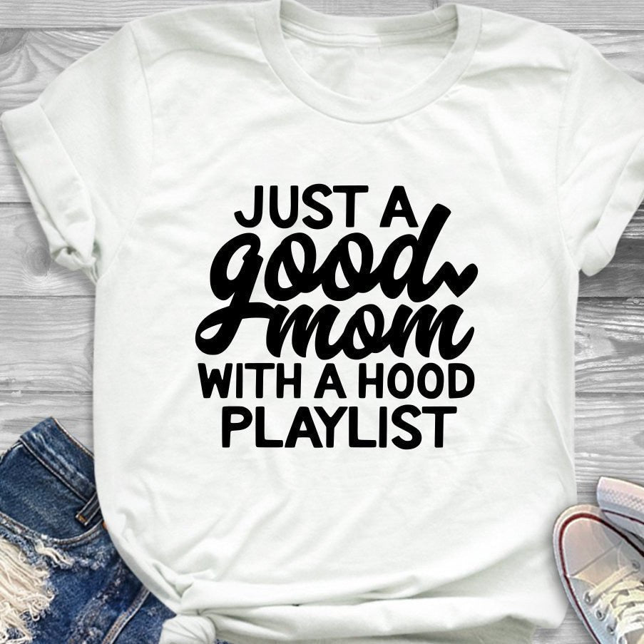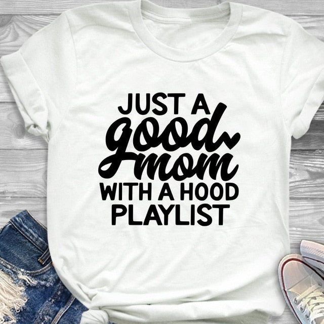 Just a Good Mom with Hood Playlist t-shirt